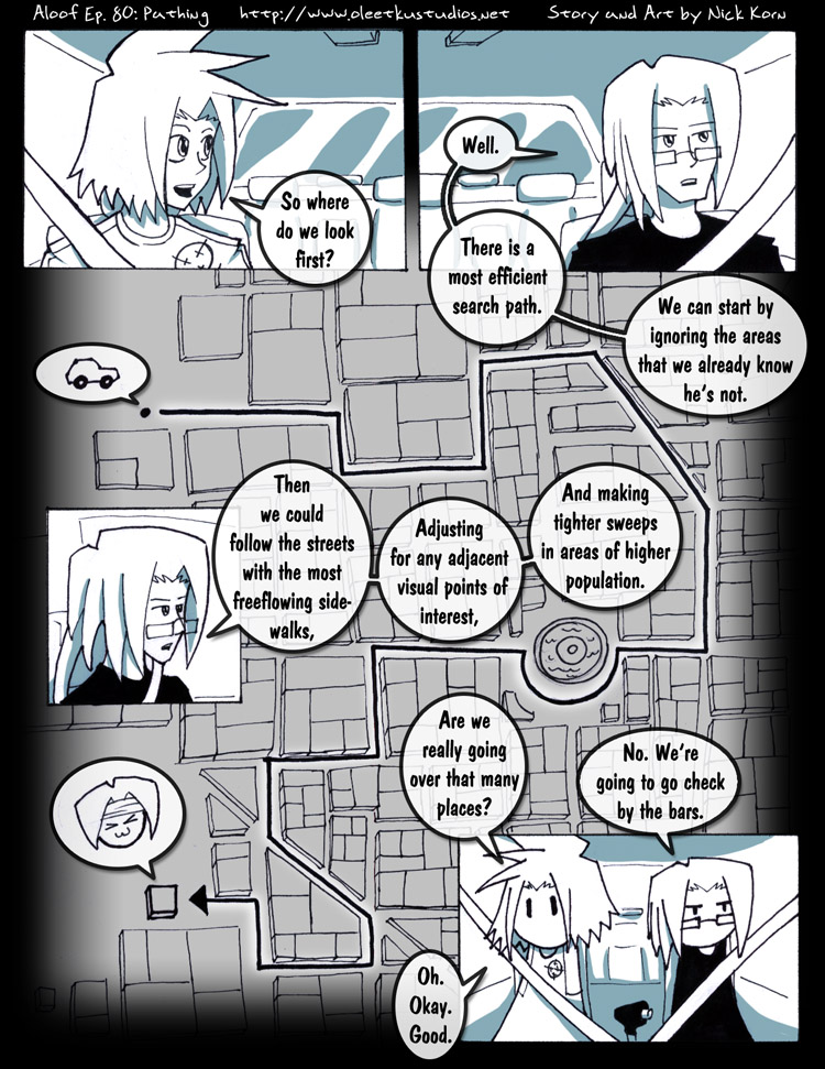 Hokay. Back to a weekly schedule. After working on the audition comic, it's nice to be able to waste an entire day working on a single page, and not crushing to get 2 or more done before passing out. At any rate, I really should be scripting these things out before I do them. The pace is about to pick up a bit.